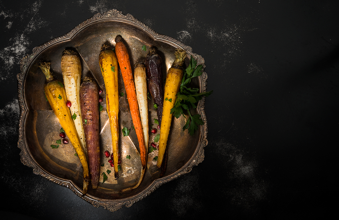- 3 to 4 bunches fresh assorted carrots, peeled